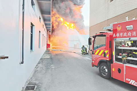 台灣高雄發生工廠大火 2025-12-17 03:30:00 ◎ 十二月十六日,台灣高雄市大發工業區一間生產保麗龍餐具的工廠起火,四十七名員工安全逃離。據了解,廠方在塑膠製品製程區,因加熱爐爆炸,引燃附近的油料釀禍,一名員工逃出後,頭髮被燒捲,說工作時突然聽到一聲爆炸聲就整個燒起來,他在旁邊不遠,被熱氣燒到,腳也受傷,包紮後沒大礙,未送醫。(香港中通社圖片)
